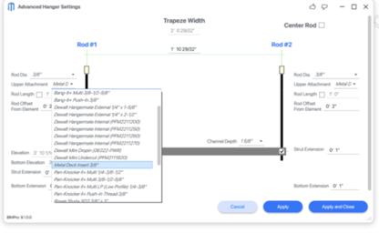 - Override rod lengths for single and trapeze hangers with easy checkbox controls.